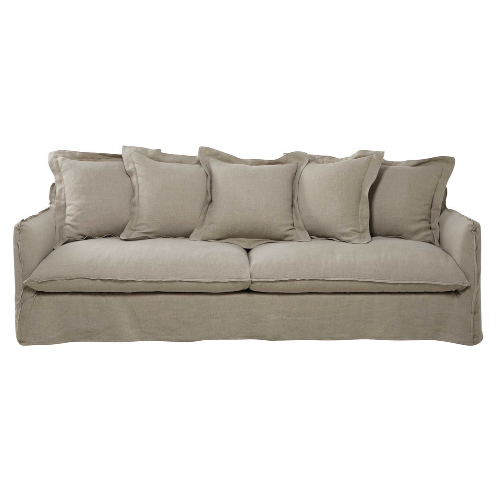 Revestimiento de lino antimanchas completamente desenfundable. Un sofá de lino con respaldo acolchado y dos.